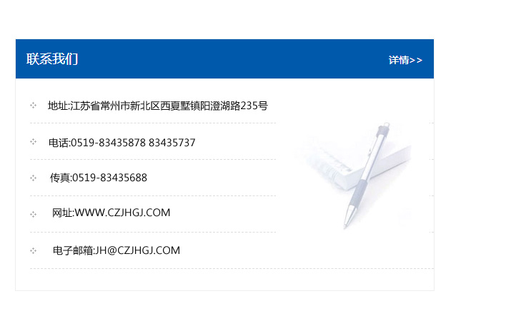 地址:常州市新北區友邦商務大廈1幢16、17層  電話:0519-85101652  傳真:0519-85112595  郵編:213022  網址:www.cz-jiayue_cn.91sxex.com  郵箱:xiajifengaa@163.com